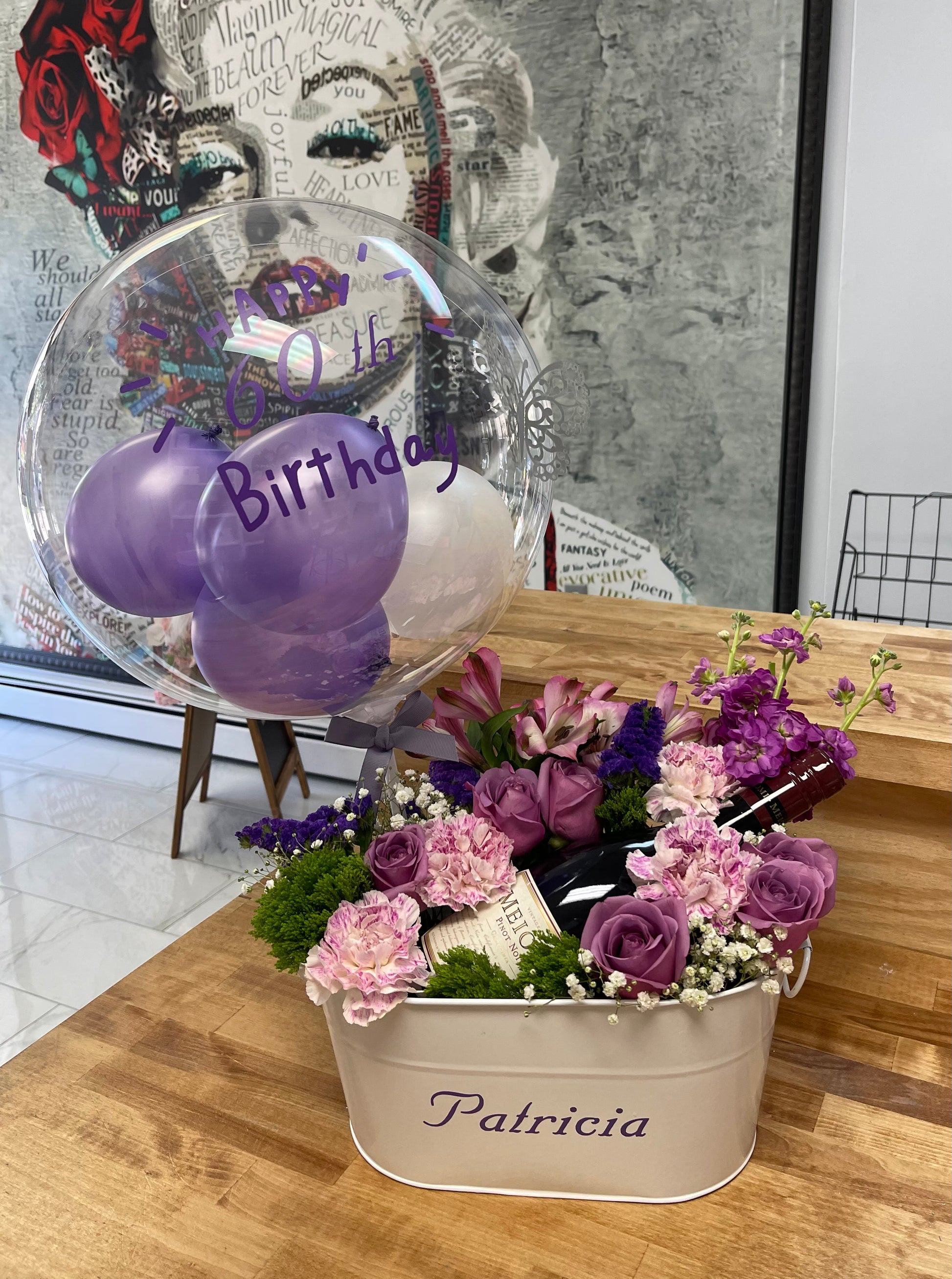 This arrangement is for our wine enthusiasts!! If you have a friend or family that loves wine then we suggest this arrangement. It's a bouquet with mixed flowers and a fine wine bottle sitting right in the middle! (wine is not included; bottle must be provided by customer!)