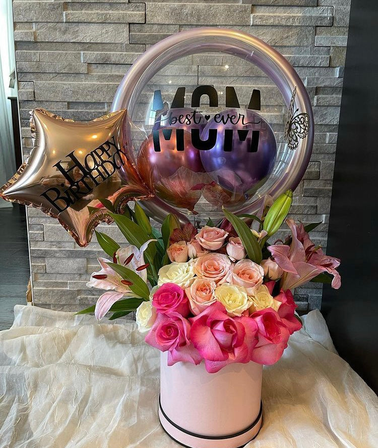 Bring joy and happiness to the one you love, with this all pink mix design. You can personalize the message on the balloons. (Size shown is Large)