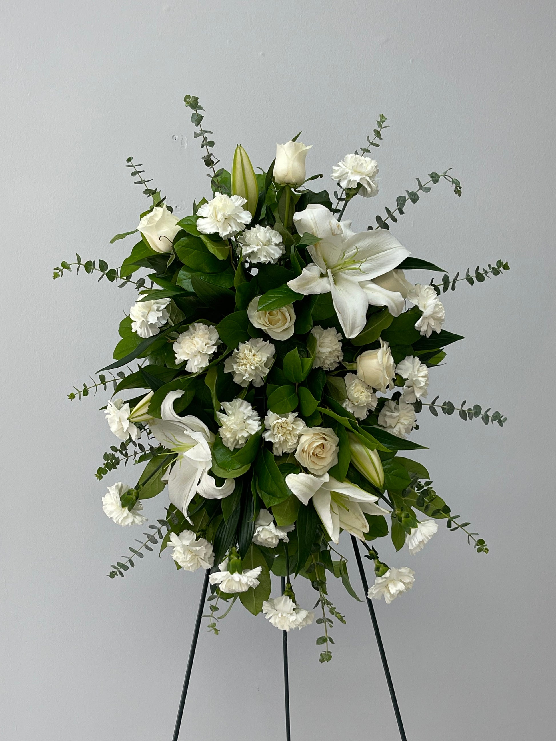 Give your loved ones a beautiful tribute with our all white Sympathy Standing Spray.